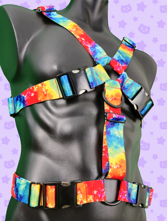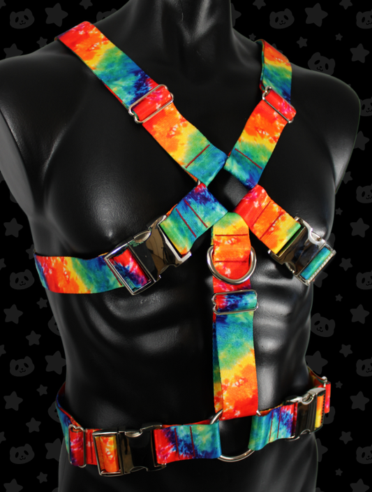 Chest Harness - Rainbow Tie-dye with Black Metal Hardware