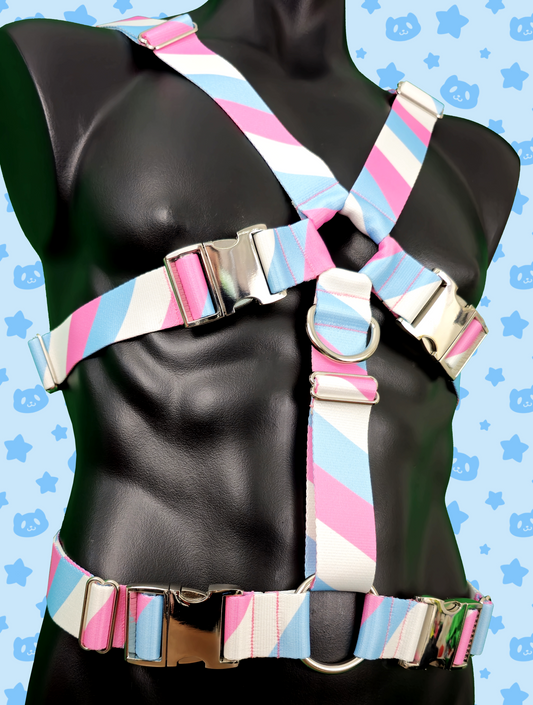 Chest Harness - Trans Pride with Silver Metal Hardware