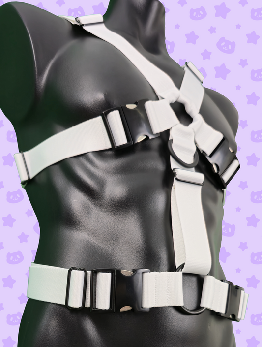 Chest Harness - Whispy Blue + White with Silver Metal Hardware