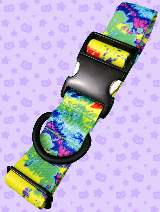 Collar - Rainbow Tie-dye with Black Metal Hardware