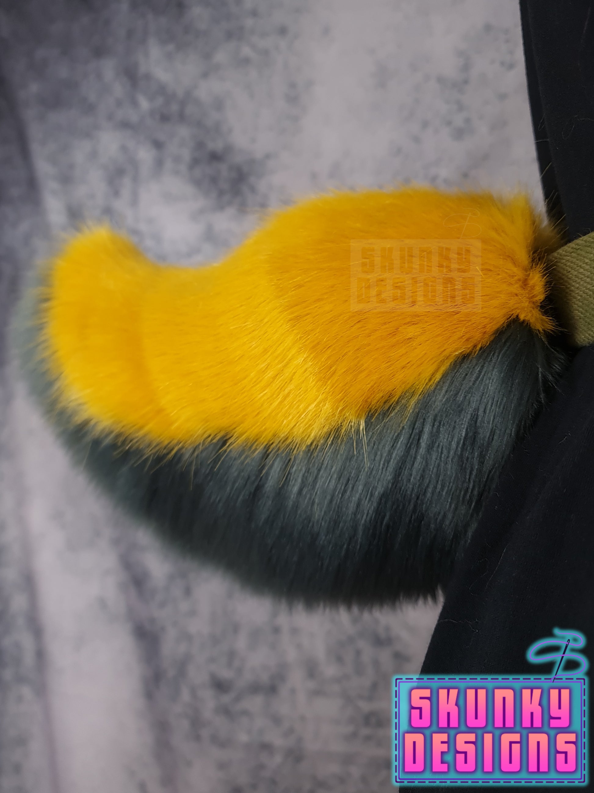 The tail is approximately 25cm / 10" from base to tip in a straight line.