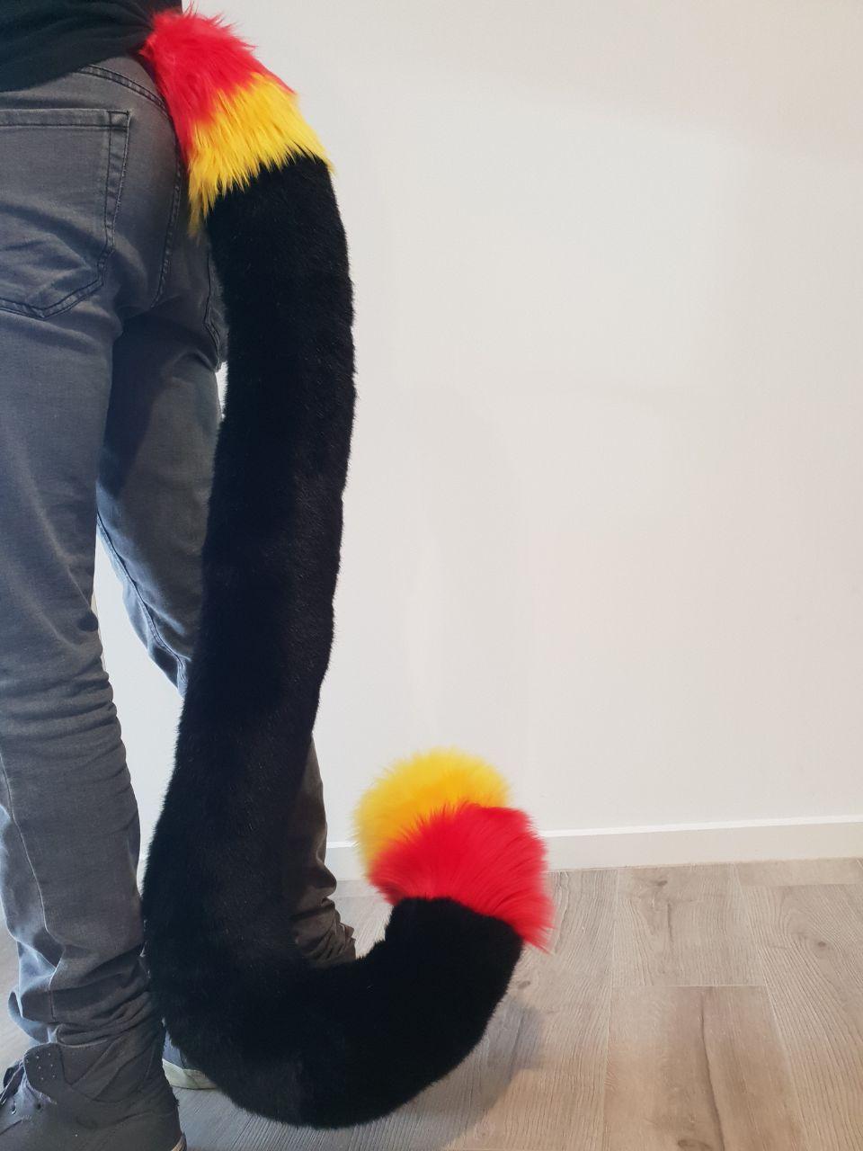 Feline Tail - Large - Black with Yellow and Red Highlights
