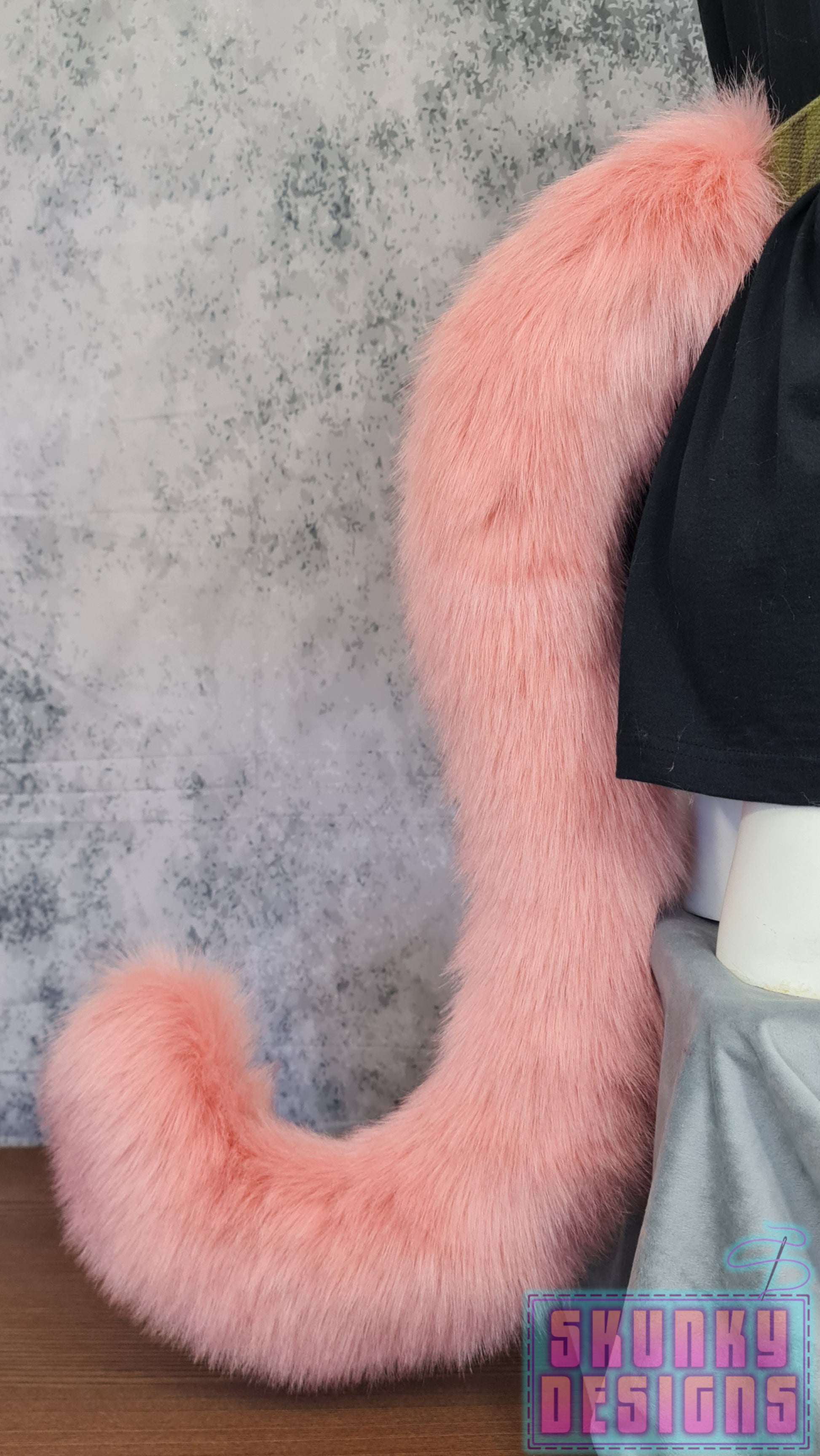 The tail is approximately 72.5cm / 28.5" tall when worn (from the top of the base against the waist straight down to the lowest point of the tail), with a total length of approximately 103cm / 40.5" when measured following the curves of the tail.