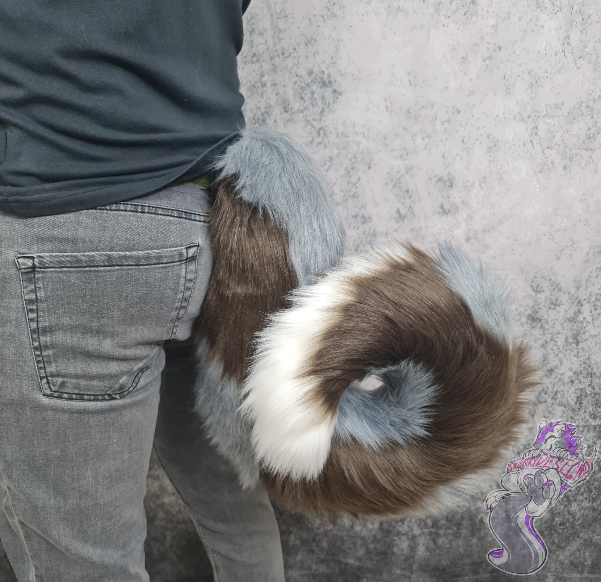 This super curly tail is just begging to go home with you! This fluffy thing is incredibly soft! There are grey spots on the outside that have sadly blended in with the background, but they're there!