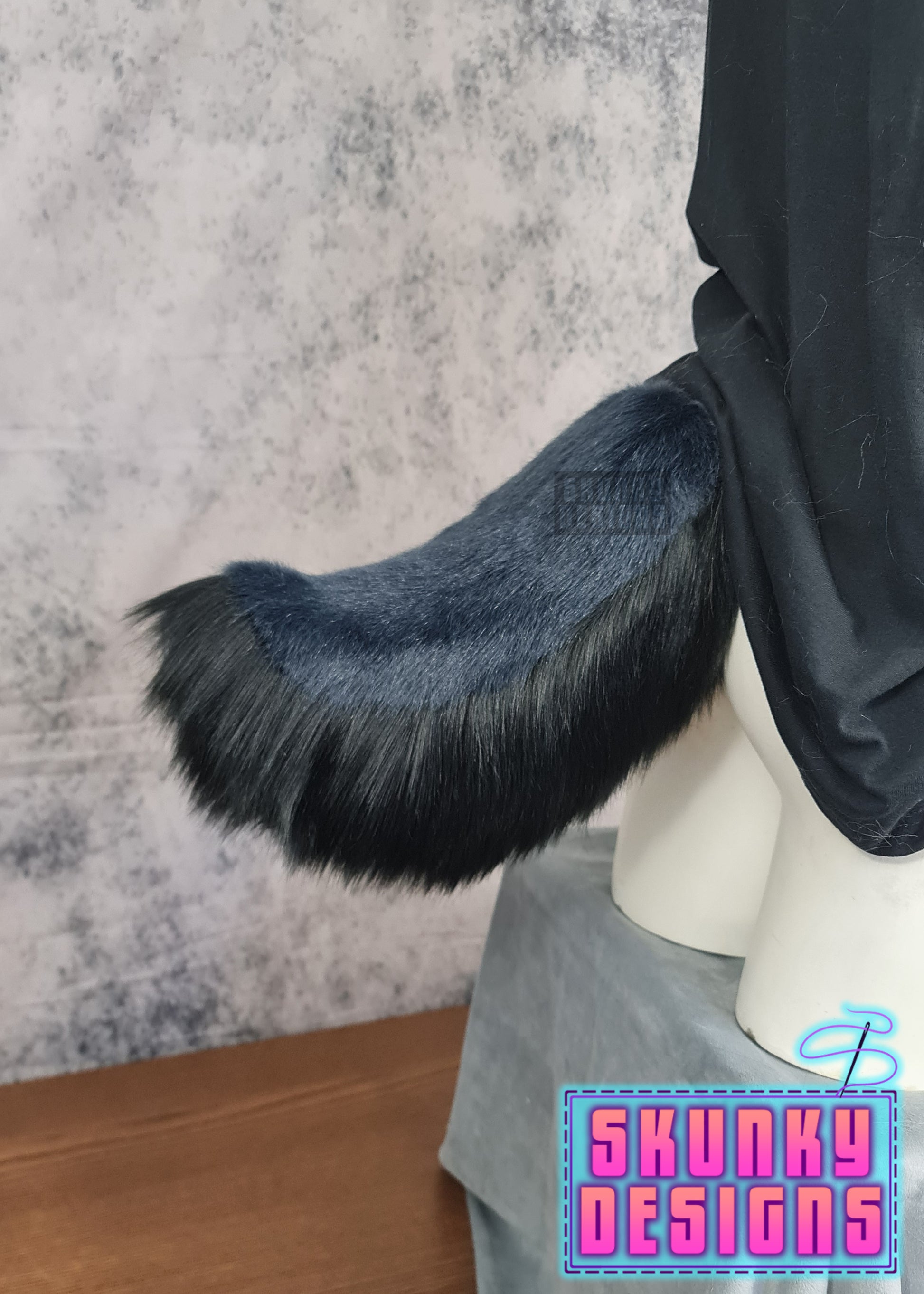 The tail is approximately 28cm / 11" from base to tip in a straight line.