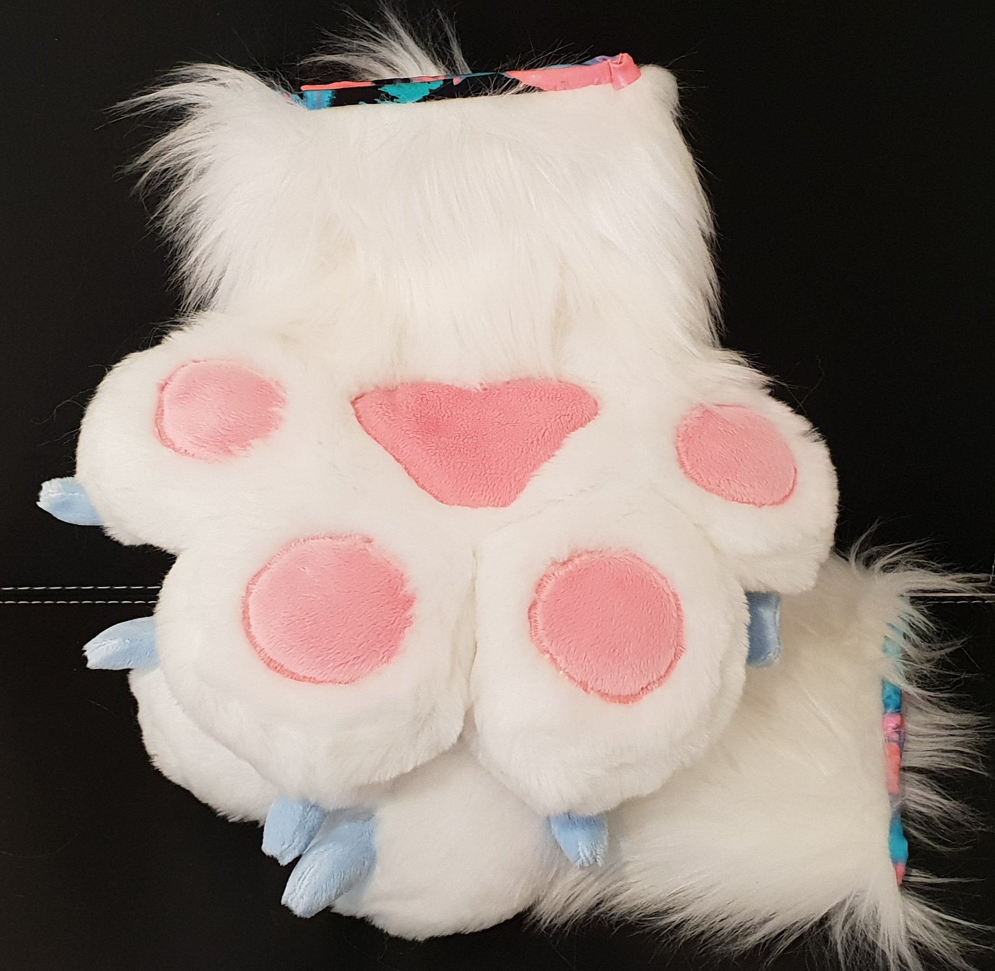 These hand paws feature stuffedclaws, with soft padding inserts to keep the fingers looking full! These handpaws are made to fit most!